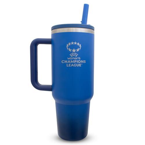 DESCUENTAZO 64% DESCUENTO UEFA Botella térmica de la Liga de Campeones para mujer, de 1.13 L, con licencia oficial de la UWCL, con popote y asa integrados, taza de viaje aislada de doble pared, acero inoxidable, sin BPA