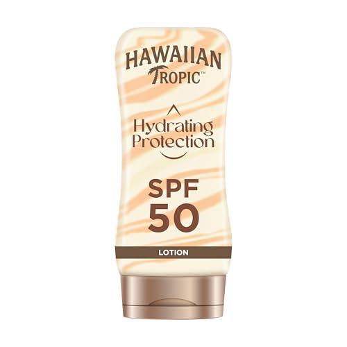 Hawaiian Tropic Hydrating Protection SPF 50 Loción Solar Protectora con Cintas de Seda Hidratantes, Resistente al Agua hasta 12 Horas, Crema (Individual)