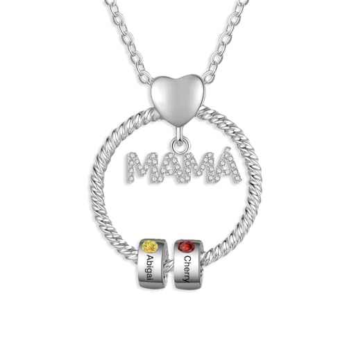 ✔💟 Collar con nombre: el collar con nombre personalizado de MAMÁ está grabado con 1 a 6 nombres de niños/familiares, sintiendo amor y esperanza cada vez que lo tocas. Cada colgante de corazón circular tiene cuentas e incrustaciones de la piedra de nacimiento de circón, lo que hace que este collar luzca elegante.