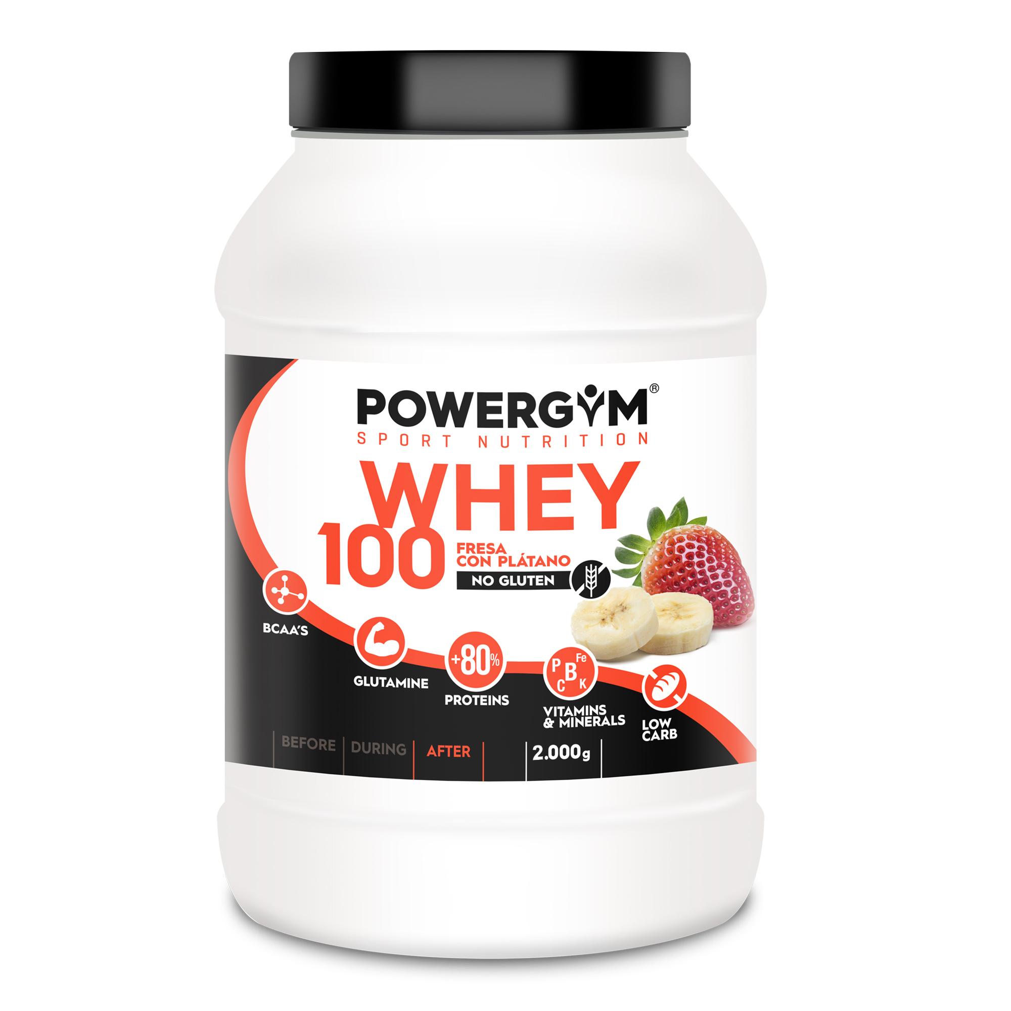 POWERGYM | Whey 100 Concentrado de Proteínas de Suero – Proteína 2.000 g Sabor STRAWBERRIES WITH BANANA con creatina, L-Glutamina, Vitaminas y Antioxidantes – Sin azucares añadidos | Miravia