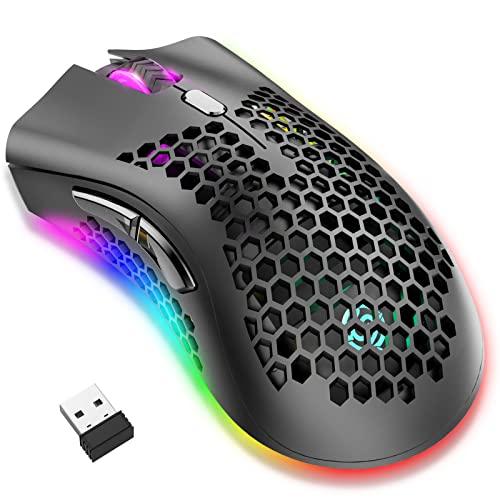 ✔Ratón inalámbrico ultraligero para videojuegos: la carcasa perforada ergonómica bien diseñada te ofrece la experiencia de juego más extrema. Reduce el peso, mejora la disipación de calor y proporciona ventilación para mantener tus palmas frescas y frescas. Garantiza un juego largo sin fatiga.