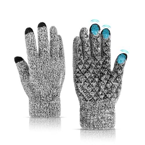 Votoko Guantes Invierno Hombre Termicos Mujer, Punto Tactiles para Pantalla Táctil Ciclismo, Correr Aire Libre para Frio Antideslizantes Conducir Deporte Running, Bicicleta Termico (Gris y Blanco)